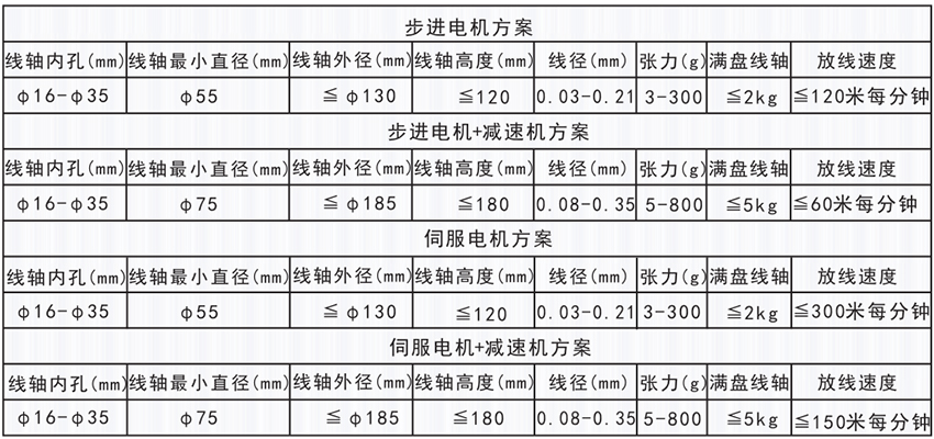 該系列具體型號及配置見下方表格,用戶根據自用線徑及軸重和張力范圍選擇合適的方案及型號