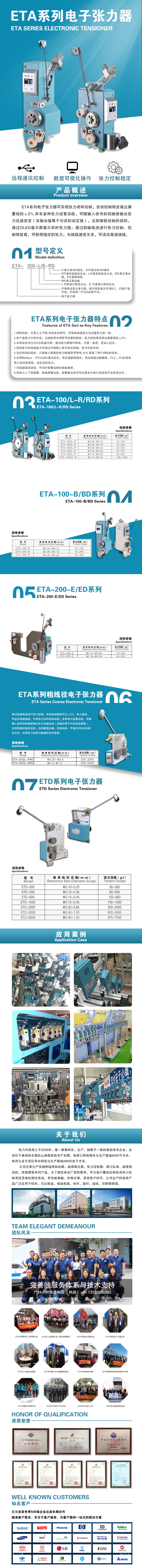 ETA系列電子張力可實現張力閉環控制,自動控制精度高達滿量程的±2%.并有多種張力設置功能,可隨輸入信號的切換使輸出張力迅速改變(其輸出值等于對應的設定值),達到智能控制的目的,通過OLED顯示屏顯示實時張力值;通過勵磁電流進行張力控制,控制精度高,可獲得穩定的張力,與繞線速度無關,可適應高速繞線;