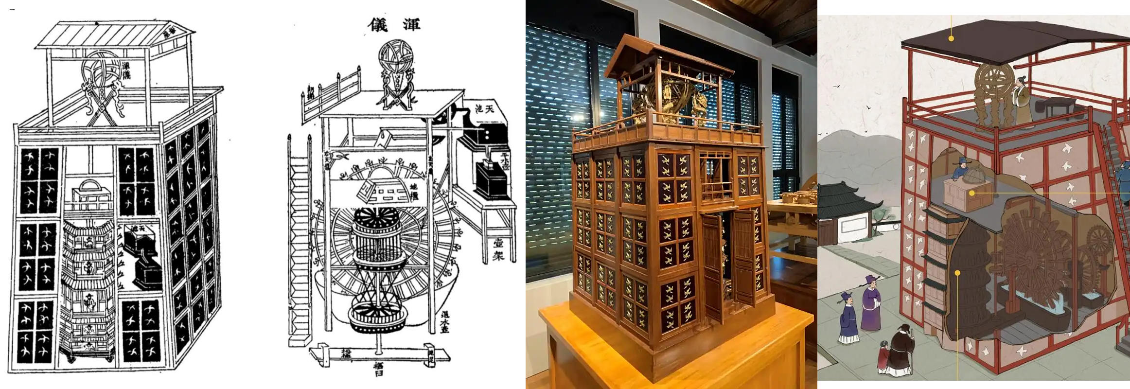 • 鏈條傳動:水運儀象臺還使用了世界上最早的鏈條傳動裝置(天梯),將動力從水輪傳遞到上層的渾儀和渾象。